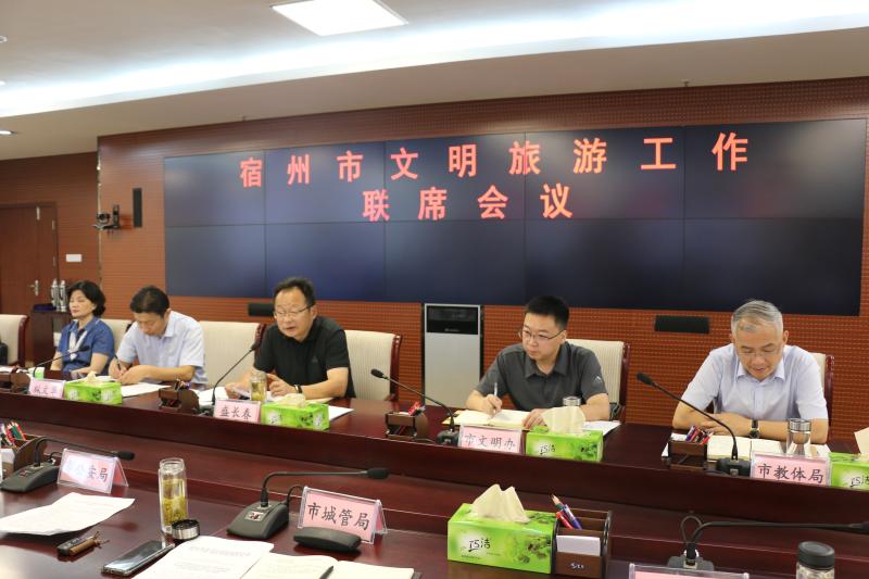 7月17日上午,宿州市文明旅游工作聯(lián)席會(huì)議在市政府第一會(huì)議室召開(kāi)。市政府副秘書(shū)長(zhǎng)盛長(zhǎng)春出席會(huì)議,文明旅游工作聯(lián)席會(huì)議成員單位、埇橋區(qū)文化和旅游局、市區(qū)重點(diǎn)旅游景區(qū)、星級(jí)飯店等參加會(huì)議。市文化和旅游局黨組成員、副局長(zhǎng)縱文華主持會(huì)議。